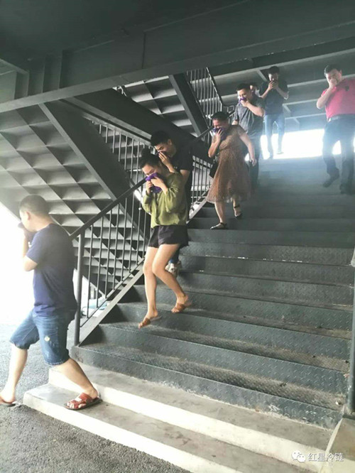 應急演練正式開始,綜合樓A2-14門面的消防警報一響,在消防控制室的值班人員及時逐級上報告事故情況後,現場總指揮鄭總向總經理張明生請求啓動公司Ⅱ級滅火預案。随後,現場總指揮召集各救援行動小組迅速集結後統一發布救援命令,指示各救援行動小組分頭對事故進行初步處置。綜合樓内工作人員及客戶用毛巾捂住口鼻、彎腰,迅速有序地從火災區向安全區域疏散。不到5分鍾的時間,全部撤離到園區的安全區域。