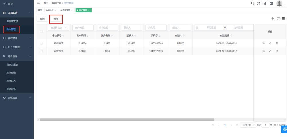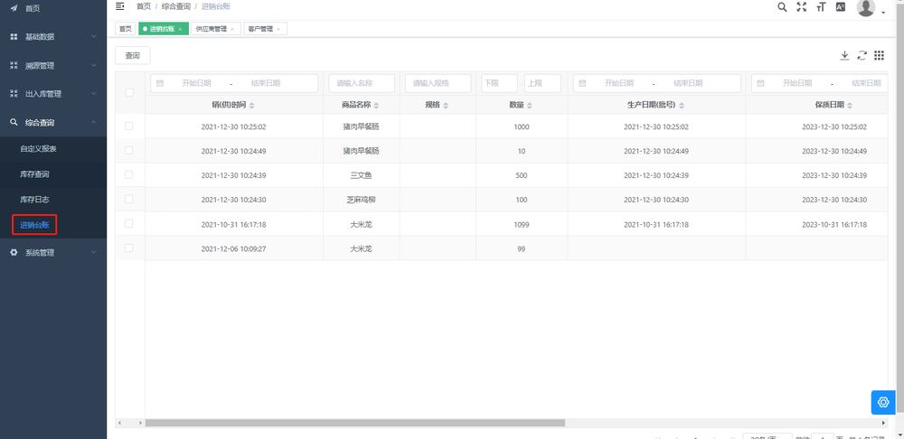 進出庫完成後系統自動導入至台賬,點擊台賬查看進出庫情況