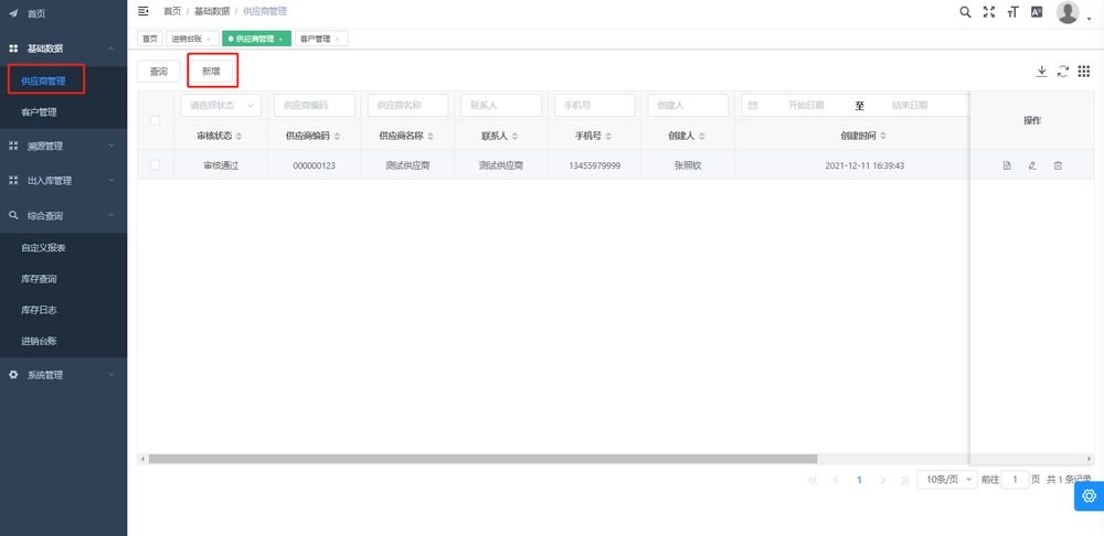 4.1提前錄入供應商信息