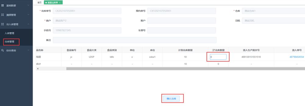 選擇待出庫訂單,點擊【出庫确認】按鈕,進入出庫詳情界面,錄入實際出庫數量,點擊确認出庫,出庫完成。