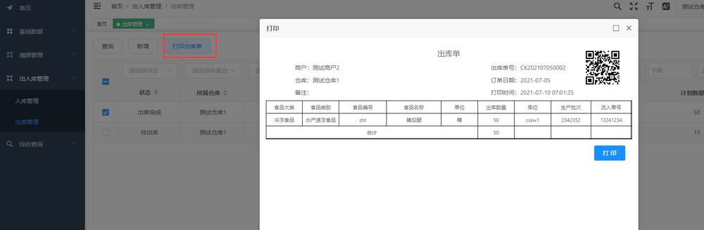 3.2.3 打印出庫單