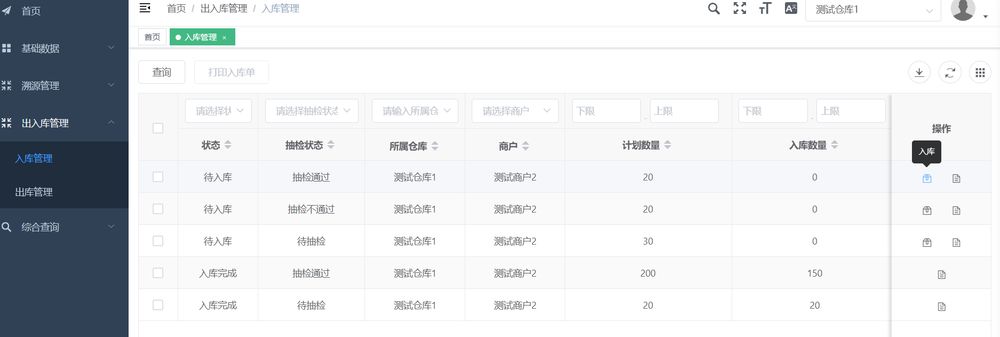 3.1.1 入庫确認