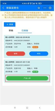 第五步:報備後是“待入倉”的狀态,此時可以對報備記錄進行撤銷和修改的操作。