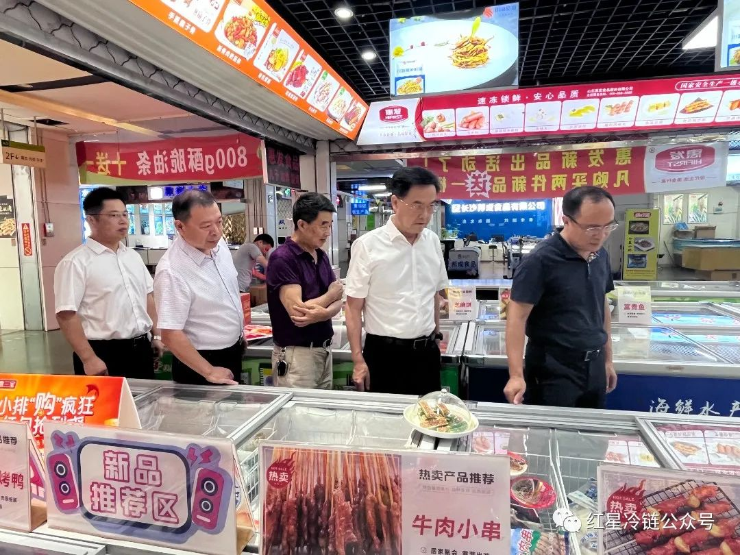 當天下午杜中華一行先後視察了紅星冷鏈四期交易中心預制菜展銷區,及五期直供中心項目現場。杜中華認真聽取了紅星冷鏈發展規劃、五期直供中心項目建設進展等情況彙報,他高度評價紅星冷鏈在湖南冷鏈市場的骨幹作用,并要求紅星冷鏈以長沙國家骨幹冷鏈物流基地建設爲契機,做好存量資源再開發,加快建設增量資源,築牢食品安全底線。