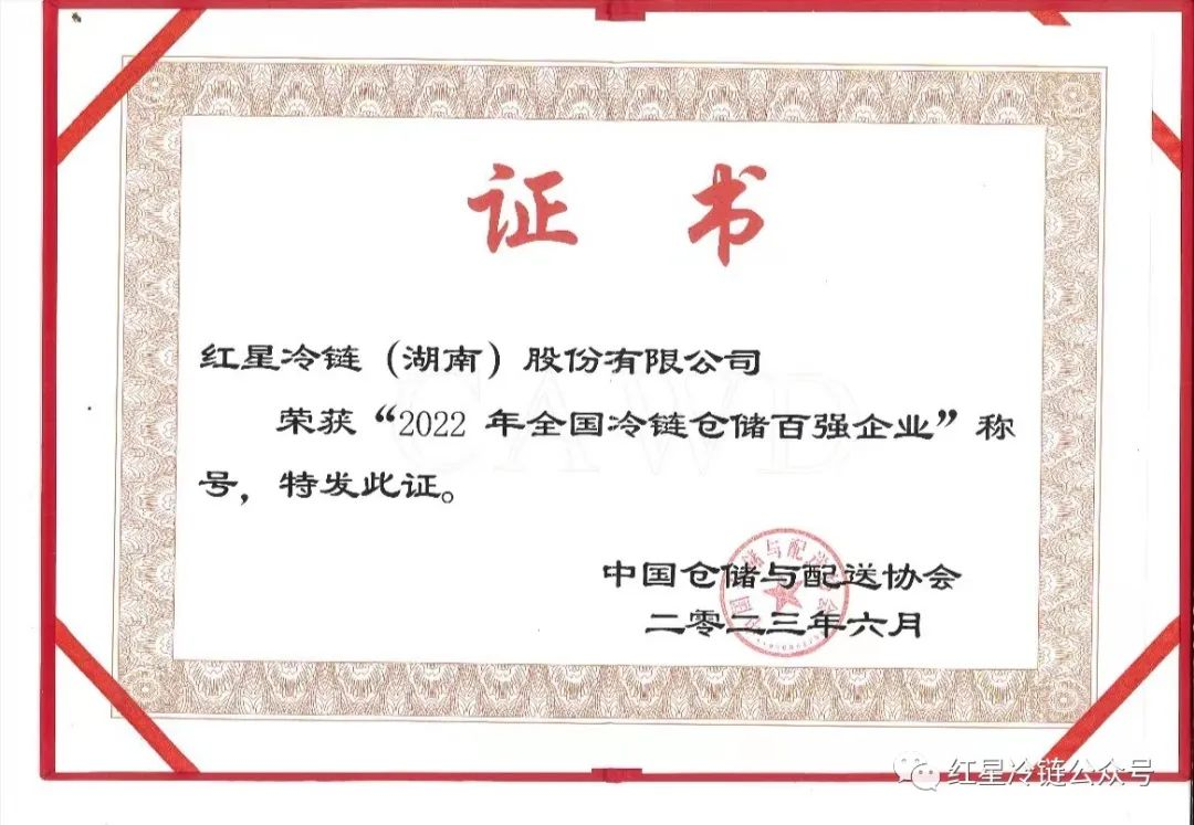 企業榮譽 | 紅星冷鏈載譽“冷鏈物流百強”“冷鏈倉儲百強”